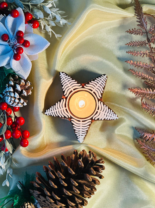 Christmas Star Wooden Candle Holder with Candle